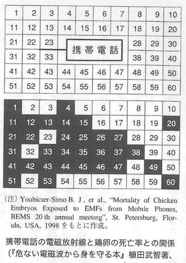 「携帯電話の電磁放射線と鶏卵の死亡率との関係」
