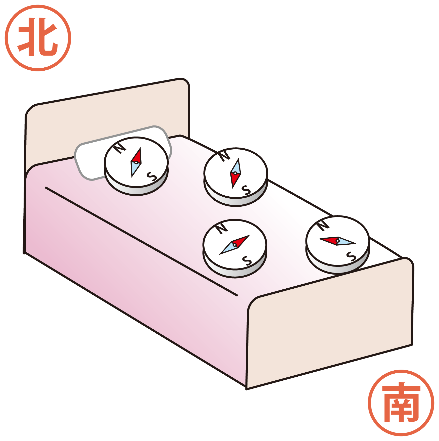 これは男性がいつもいる場所に問題があるなと考えました。そこで、本人に方位磁石を持たせ、よく居る場所の磁場が狂っていないかどうか方位磁石で調べてもらうことにしました。すると、彼が寝ているベッドの上はすべて、北を向くはずの方位磁石の針が全く違う方向を指すことがわかったのです。