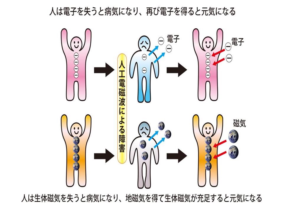 私たちが生命を営むためには、地磁気は必要不可欠なものです。ところが現在、地磁気が急速に減少しています。500年前の地磁気の量に比べて約半分になっているというデータすらあります。そして地磁気の減少に追い打ちをかけるように、現代は鉄やコンクリート製の住居が増えて人が地磁気を受け取りにくい環境になっています。さらに、身の回りの電気設備や電子機器が増え、人体に有害な人口電磁波が大量に発生したことで、人は地磁気を受け取れなくなっています。その結果、私たちは地磁気をつかって生体磁気を作り出せなくなり、健康で生きることがむずかしくなっています。