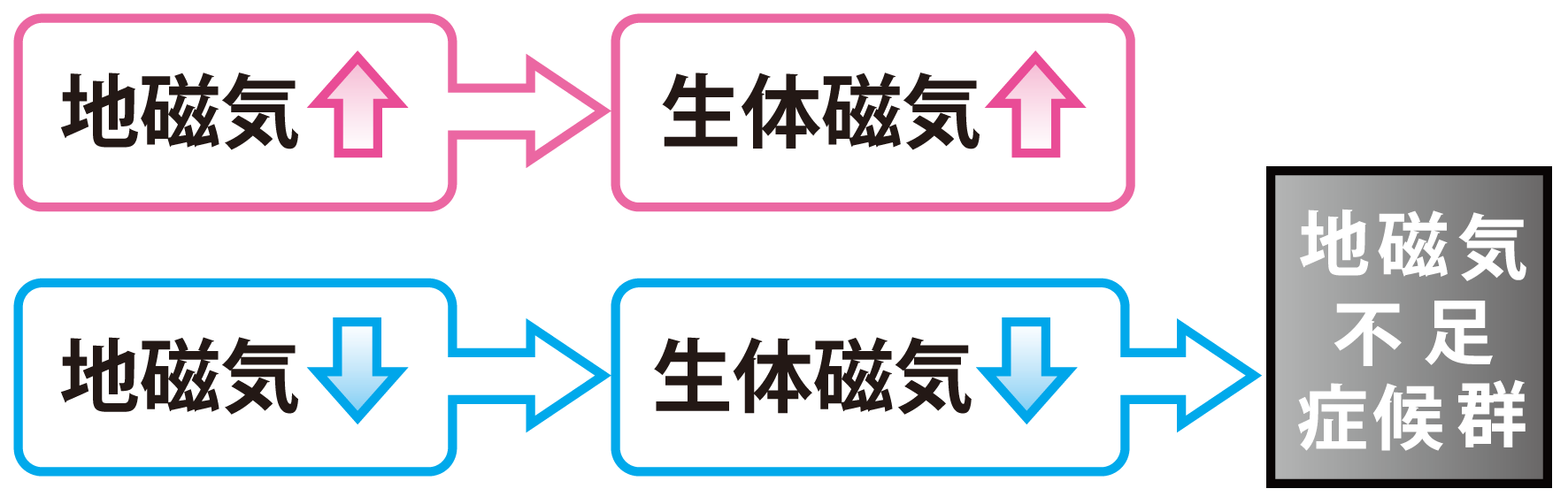 ※地磁気症候群…地磁気が不足すると、日周リズムの異変や代謝機能の低下、白血球の減少などさまざまな生体機能の乱れが起こります。