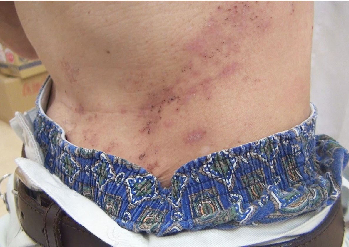 写真は最悪の状態の時であり今年5月の時点ではここまで重症ではなかったが、中等度の湿疹が出ていた。6月以降現在に至るまで、湿疹の再発はない。