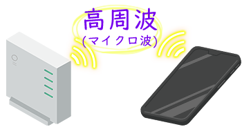 | 低周波 | 空気中も短距離に流れるが、主に物質の表面を強く流れる![]() |